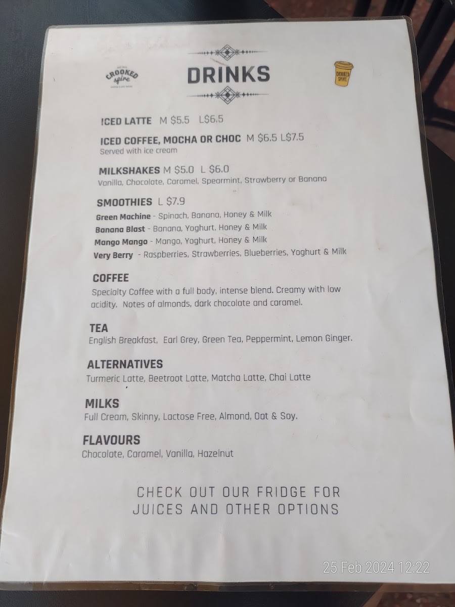 Crooked Spire Coffee & Art House Henley Brook Menu